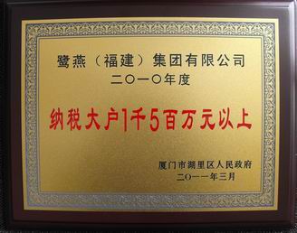 由廈門(mén)市湖里區政府舉辦的 “湖里區2010年度納稅先進(jìn)企業(yè)”的評選名單已經(jīng)正式揭曉,鷺燕(福建)集團有限公司榜上有名,獲得了 “湖里區2010年度納稅大戶(hù)1千5百萬(wàn)元以上先進(jìn)企業(yè)”的榮譽(yù)稱(chēng)號。自2007年底搬遷至湖里區以來(lái),我司已連續三年獲此榮譽(yù)稱(chēng)號。