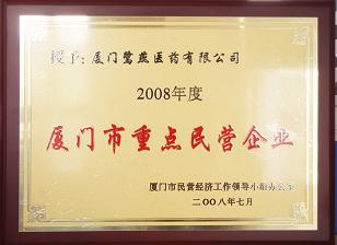 近日,經(jīng)市政府第35次常務(wù)會(huì )議研究確認, “2008年度廈門(mén)市重點(diǎn)民營(yíng)企業(yè)”名單已正式公布,廈門(mén)鷺燕醫藥有限公司繼2006年之后再次獲此殊榮。 據相關(guān)負責人介紹,該評選活動(dòng)每?jì)赡昱e行一次,主要針對在廈門(mén)注冊,在所從事行業(yè)處于領(lǐng)先地位,獲得相關(guān)行業(yè)部門(mén)、社會(huì )團體或同類(lèi)型企業(yè)普遍認可的民營(yíng)企業(yè)。 本次共評選出60家重點(diǎn)民營(yíng)企業(yè),鷺燕醫藥2007年度銷(xiāo)售收入近10億元,比上年增長(cháng)36.9%。作為唯一的一家醫藥流通企業(yè)入選,彰顯了企業(yè)的行業(yè)地位。此次獲選肯定了公司的經(jīng)營(yíng)業(yè)績(jì),同時(shí)也激勵著(zhù)公司發(fā)揮優(yōu)勢、克服困難,繼續保持企業(yè)健康、可持續發(fā)展能力,力爭在新的一年里再創(chuàng )佳績(jì),實(shí)現集團股份制改造后經(jīng)營(yíng)質(zhì)量有質(zhì)的飛躍,為全社會(huì )的健康事業(yè)做出新的更大的貢獻。
