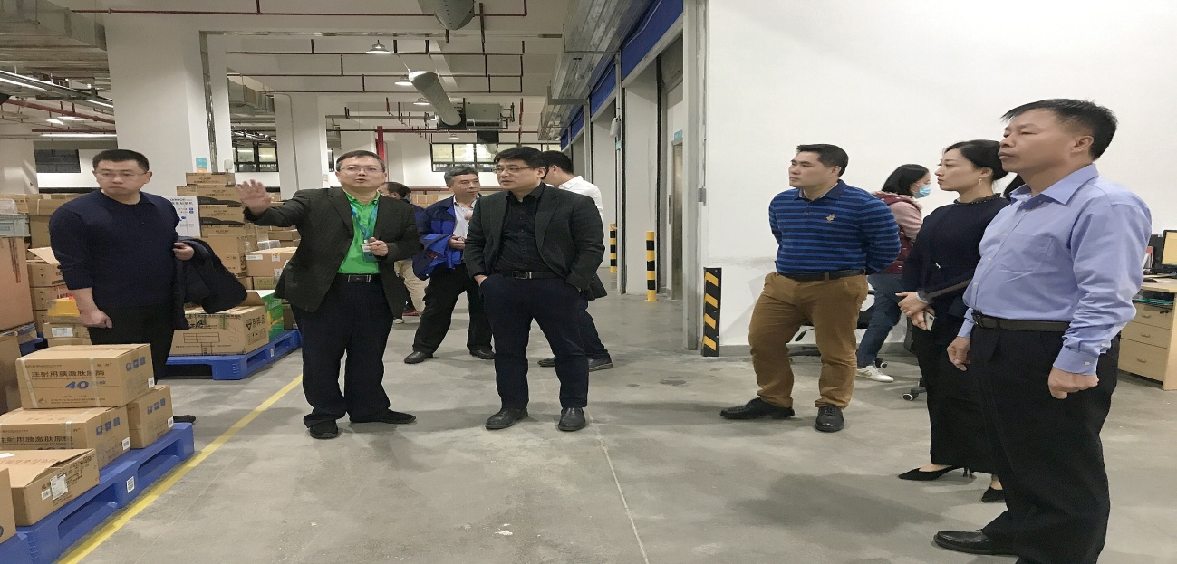 (圖一:省藥監局領(lǐng)導參觀(guān)鷺燕廈門(mén)現代醫藥倉儲中心)