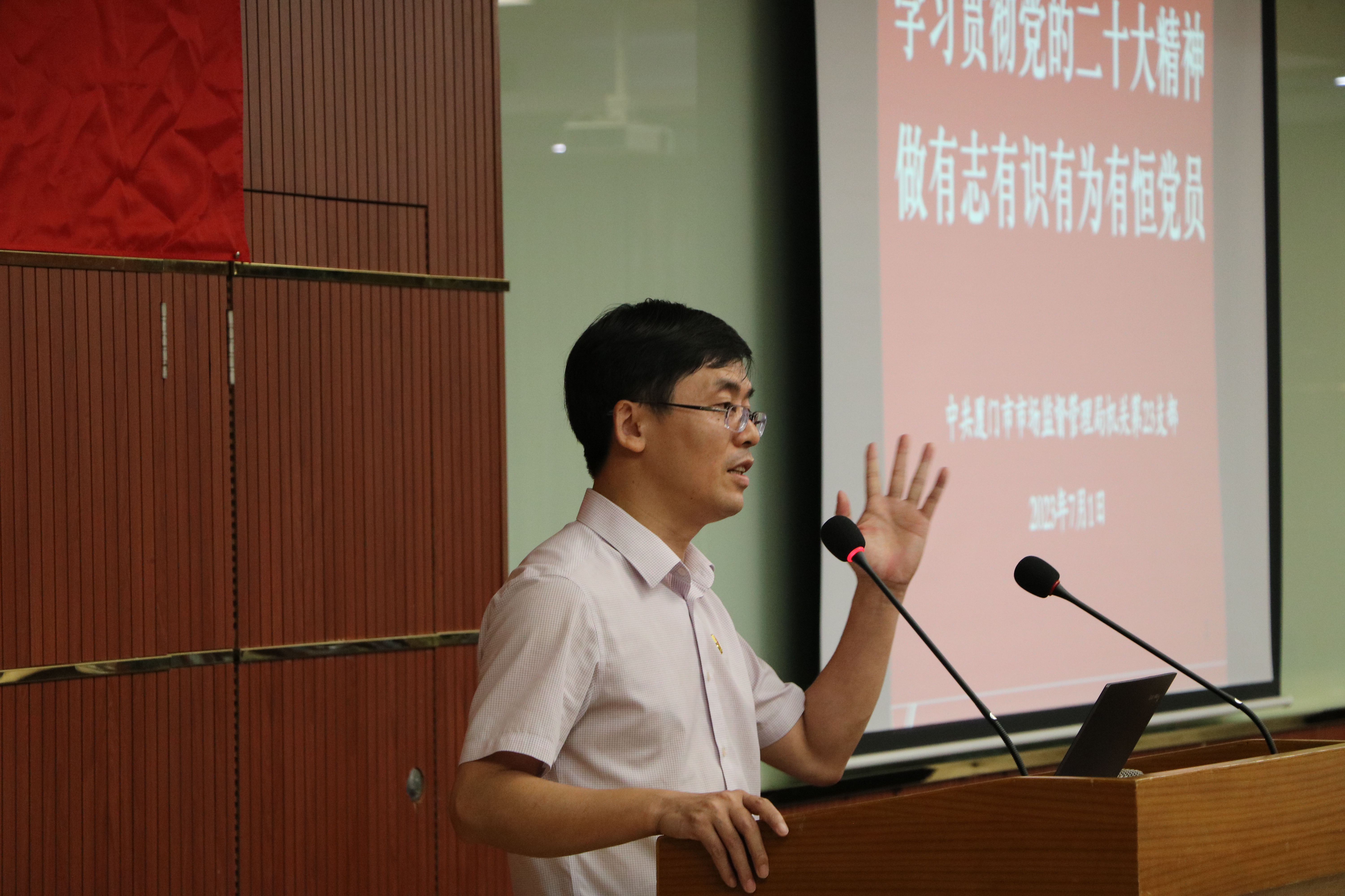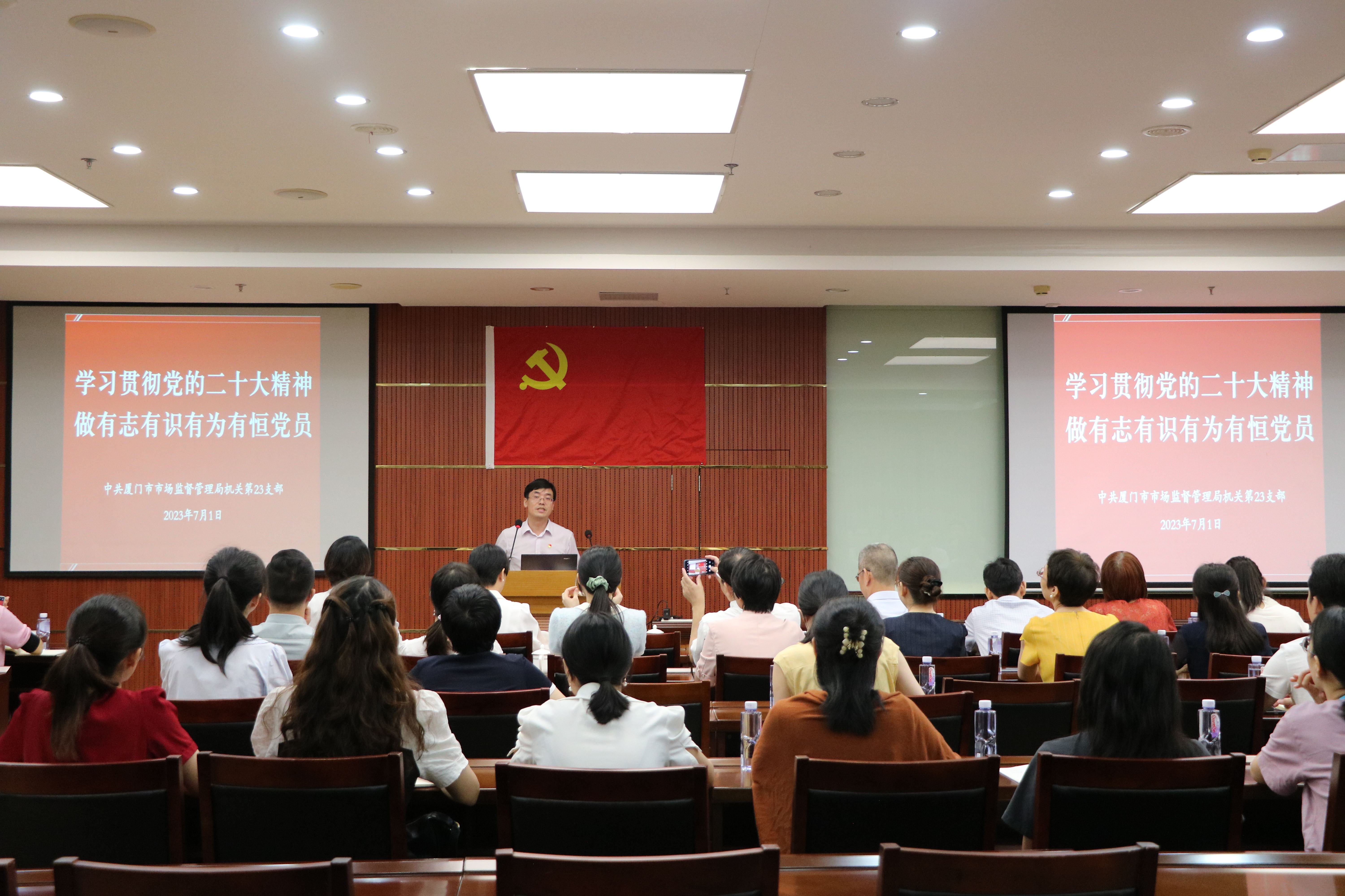 在這次聯(lián)建共建中,中共廈門(mén)市市場(chǎng)監督管理局機關(guān)第二十三支部何清杭書(shū)記帶來(lái)了一堂《學(xué)習貫徹黨的二十大精神,做有志有識有為有恒黨員》的主題黨課。授課前,何書(shū)記作為領(lǐng)誓員,脫稿帶領(lǐng)大家一起重溫入黨誓詞,全體黨員面對鮮紅的黨旗,莊嚴地舉起右拳,鏗鏘有力、擲地有聲地宣讀誓詞。