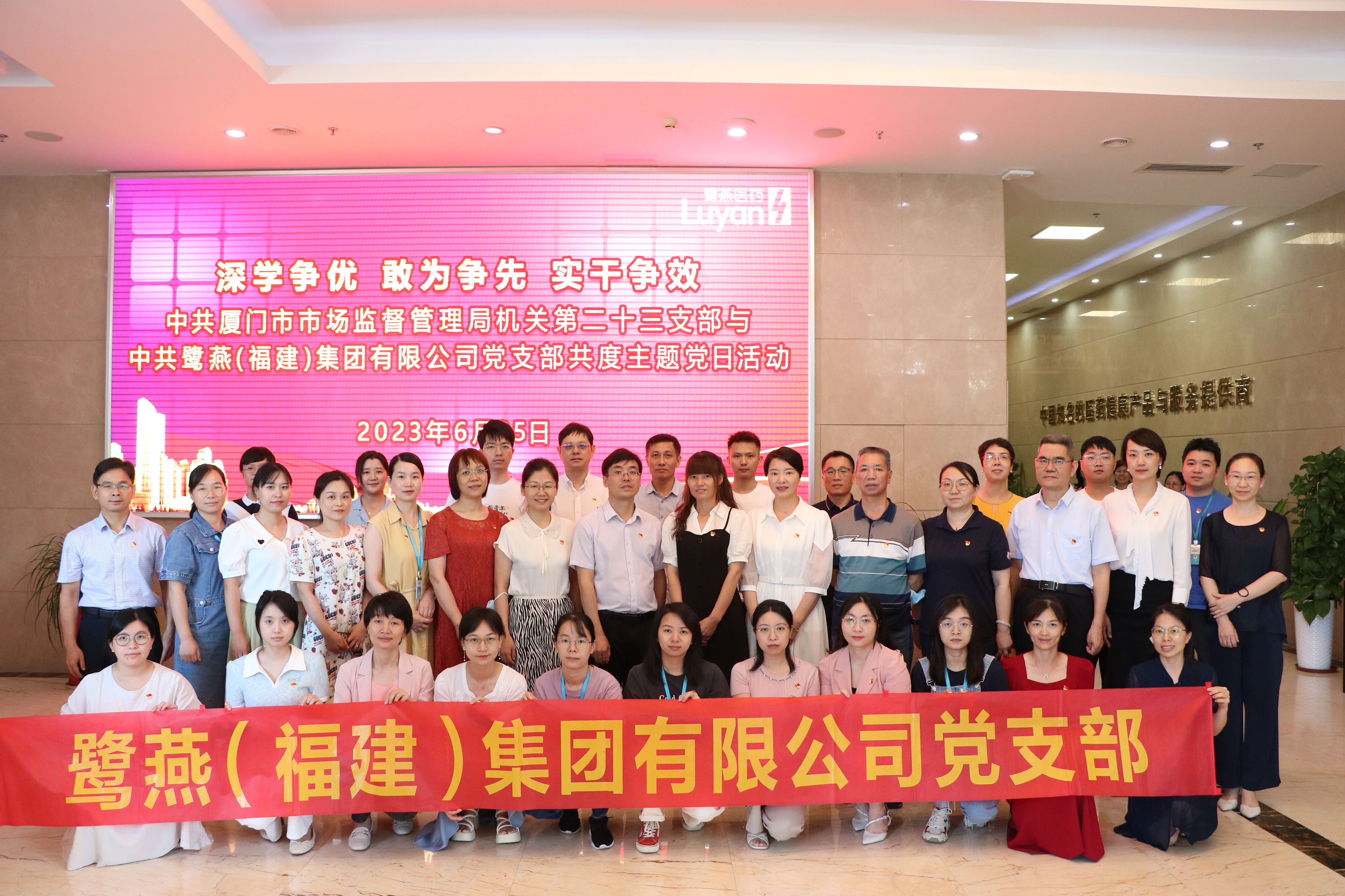 為深入學(xué)習貫徹黨的二十大精神,慶祝中國共產(chǎn)黨成立102周年,充分發(fā)揮黨建工作對企業(yè)經(jīng)營(yíng)管理的引領(lǐng)力,鷺燕(福建)集團有限公司黨支部積極主動(dòng)對接監管部門(mén)基層黨支部,與中共廈門(mén)市市場(chǎng)監督管理局機關(guān)第二十三支部共同開(kāi)展主題黨日活動(dòng)。2023 年6月25日, 活動(dòng)在鷺燕總部大廈如期舉行,中共廈門(mén)市市場(chǎng)監督管理局機關(guān)第二十三支部全體黨員、鷺燕(福建)集團有限公司黨支部黨員以及鷺燕集團廈門(mén)區域部分成員公司總經(jīng)理、質(zhì)管干部參加了活動(dòng)。