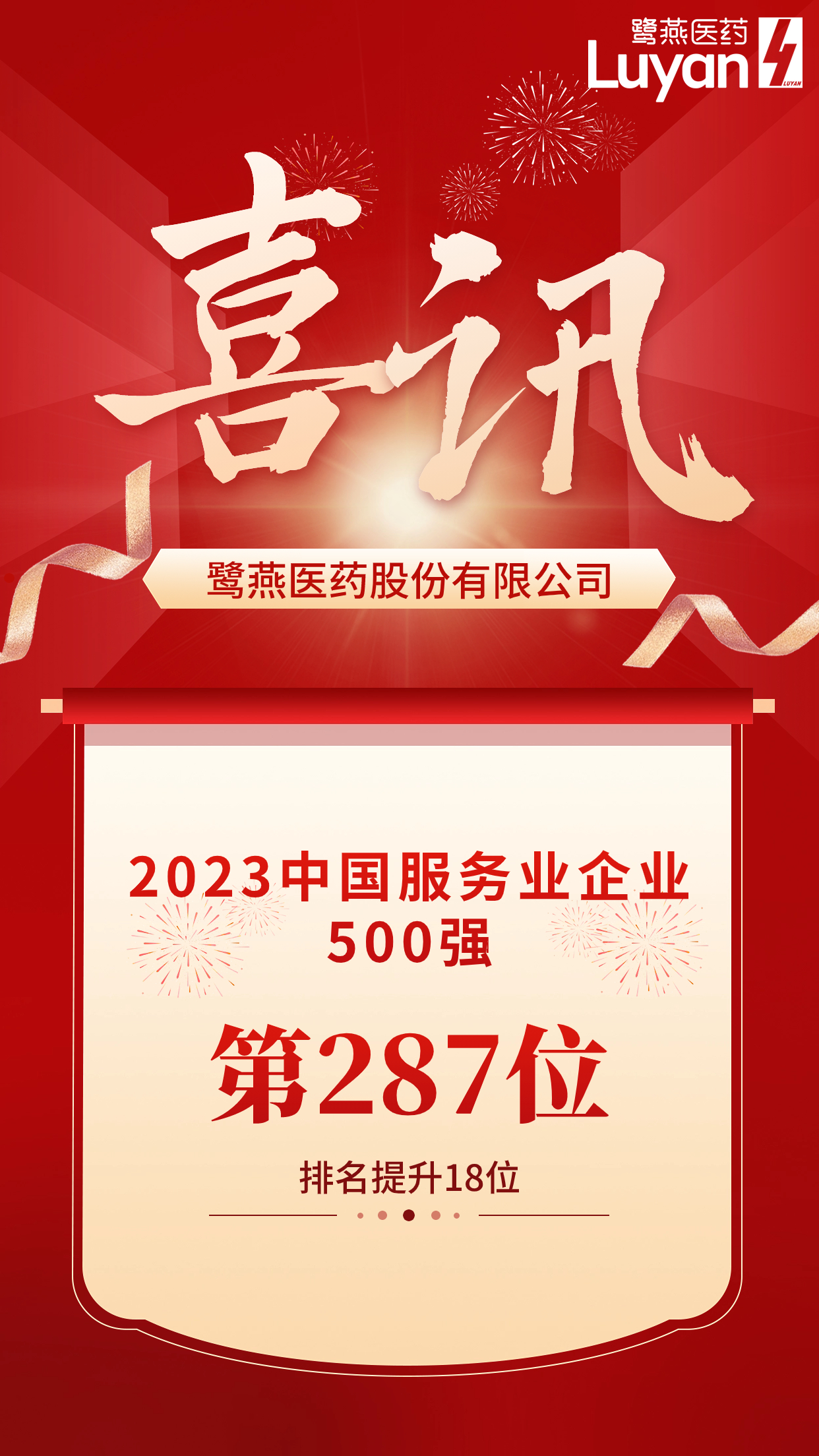 鷺燕醫藥榮列2023中國服務(wù)業(yè)企業(yè)500強第287位