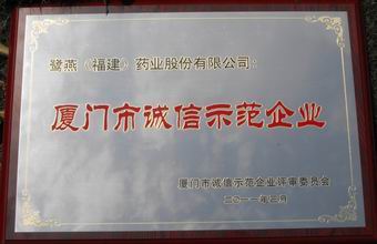 “2008 —2009年度廈門(mén)誠信示范企業(yè)”是廈門(mén)首個(gè)誠信企業(yè)評選活動(dòng)。本活動(dòng)由廈門(mén)市誠信促進(jìn)會(huì )、廈門(mén)市企業(yè)和企業(yè)家聯(lián)合會(huì )、各級政府機關(guān)等28個(gè)相關(guān)部門(mén)聯(lián)合開(kāi)展,組委會(huì )本著(zhù)“公開(kāi)、公正、公平”的原則首次在全市范圍內共同開(kāi)展誠信示范企業(yè)的評選。經(jīng)過(guò)一系列激烈的競爭及組委會(huì )的嚴格評選,本企業(yè)最終獲得了 “2008—2009年度廈門(mén)市誠信示范企業(yè)”的榮譽(yù)稱(chēng)號。