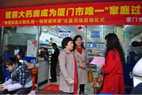 2012年3月15日上午,由廈門(mén)市食品藥品監督管理局和廈門(mén)鷺燕大藥房有限公司聯(lián)合發(fā)起的“清理家庭過(guò)期藥、綠色健康倡環(huán)?!惫婊顒?dòng)啟動(dòng)儀式在鷺燕大藥房前埔分店舉行。本次活動(dòng)的主旨是倡導健康環(huán)保,同時(shí)給廣大人民群眾營(yíng)造一個(gè)安全健康的用藥環(huán)境,有效減少因過(guò)期藥品使用給家庭帶來(lái)的健康傷害。