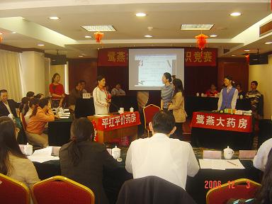 廈門(mén)鷺燕大藥房有限公司于2006年12月3日在廈門(mén)廬山大酒樓隆重舉行鷺燕杯首屆工會(huì )知識競賽,此次工會(huì )知識競賽由6個(gè)工會(huì )小組各自選派4名選手參加,比賽環(huán)節包括團隊介紹、啦啦隊互動(dòng)、演講比賽、必答題、搶答題、猜詞秀、才藝表演等,形式多樣、內容豐富。比賽現場(chǎng)還邀請了一些供應商的代表作為嘉賓評委,為比賽進(jìn)行現場(chǎng)點(diǎn)評及頒獎。
