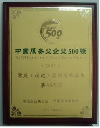 鷺燕集團近日捷報頻傳,在剛剛榮獲了“2007廈門(mén)企業(yè)100強”之后,再次躋身于“中國服務(wù)企業(yè)500強”之列。我集團已連續兩年獲此殊榮。